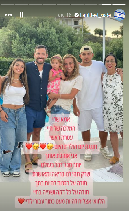 לוי כתבה בסטורי שהעלתה ובו תמונה של אמה ושל כל משפחתה, לירז שדה וילדיה, וכתבה: "אמא שלי, המלכה של חיי, עטרת ראשי, חוגגת יום הולדת היום. אני אוהבת אותך יותר מכל דבר בעולם".