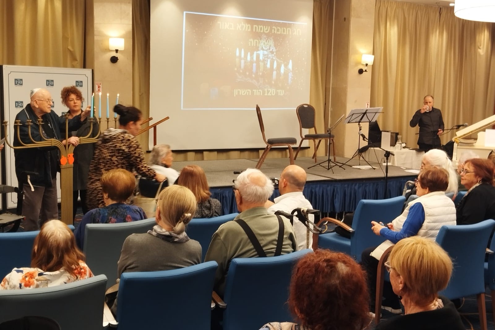 האולם התמלא לאט לאט, ותמר ויעקב, שהיו אמורים להדליק את החנוכייה, חיכו לידה בהתרגשות להתחיל. דיירי הדיור המוגן נכנסו בזרם דק, חלקם לבד, חלקם בחבורות פטפטניות, וחלק קטן אך מתרגש בזוגות. "אלו זוג, לא עוזבים אחד את השני", לחשה אחת הדיירות לשכנתה, "והיא, היא עושה כאילו היא לא שומעת, אבל היא יודעת הכול".