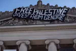 מאות מפגינים פרו-פלסטינים "השתלטו" אתמול (יום שישי) על חלקים ממוזיאון ברוקלין שבניו יורק, התעמתו עם שוטרים ותלו כרזת ענק מעל הכניסה הראשית: "שחררו את פלסטין, התנתקו מרצח העם".