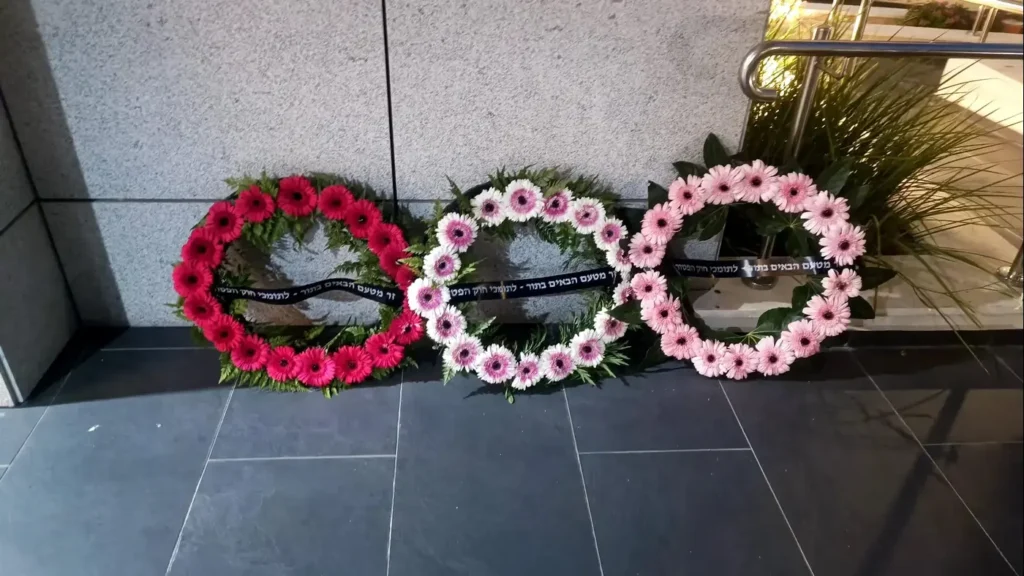 לקראת ההצבעה היום (שני) על חוק הפטור מגיוס, פורום "מתגייסים לאחדות", המורכב מהורים שכולים, משפחות חיילי מילואים רבנים ואנשי רוח, הניח זרי פרחים מטעם "הבאים בתור" בפתח ביתם של חברי קואליציה ובהם ישראל כץ, יולי אדלשטיין, חנוך מליביצקי, משה סעדה ועוד.