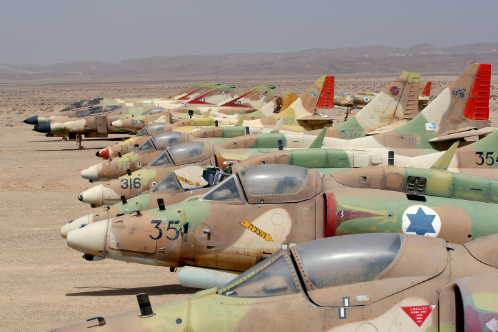 **FILE** Airplanes lined up next to each other at an air force "cemetery" for combat planes which have been taken out of practice. The planes are waiting to be taken apart for their valuable metal and electronic devices. April 14, 2008. Photo by Moshe Shai/FLASH90 **MAARIV AND AGENCIES OUT** *** Local Caption *** .??? ????? ?????? ??? ????? ?????? ????????? ?????? ??????? ???? ???? ????? ???????? ?????? ????????? ????? ?????? , ?????? , ???? ???????
