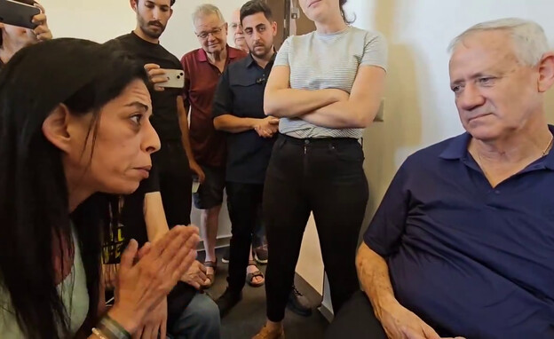 עינב, אימו של החטוף מתן צנגאוקר, דרשה מהשר גנץ לא לעזוב את הממשלה כדי לשכנע את יתר השותפים לקואליציה להסכים להצעה הישראלית שהוגשה לחמאס • ״אתה נכנסת לממשלה כדי להיות הקול השפוי והמבוגר האחראי״, אמרה צנגאוקר והוסיפה: ״אם תצא בשבת – אתה תפקיר את החטופים״ • גנץ השיב: ״אני מחויב למאבק, לא משנה באיזה מקום אני נמצא״